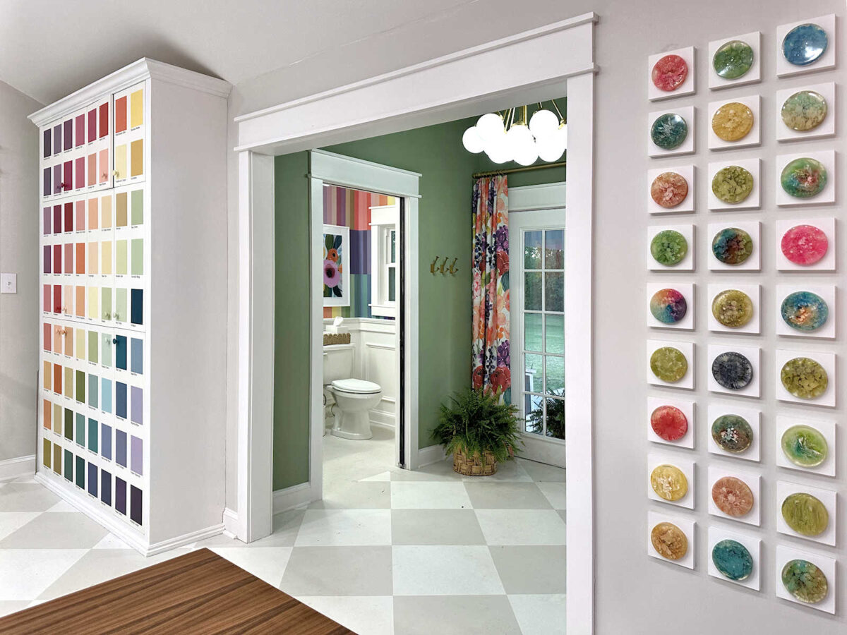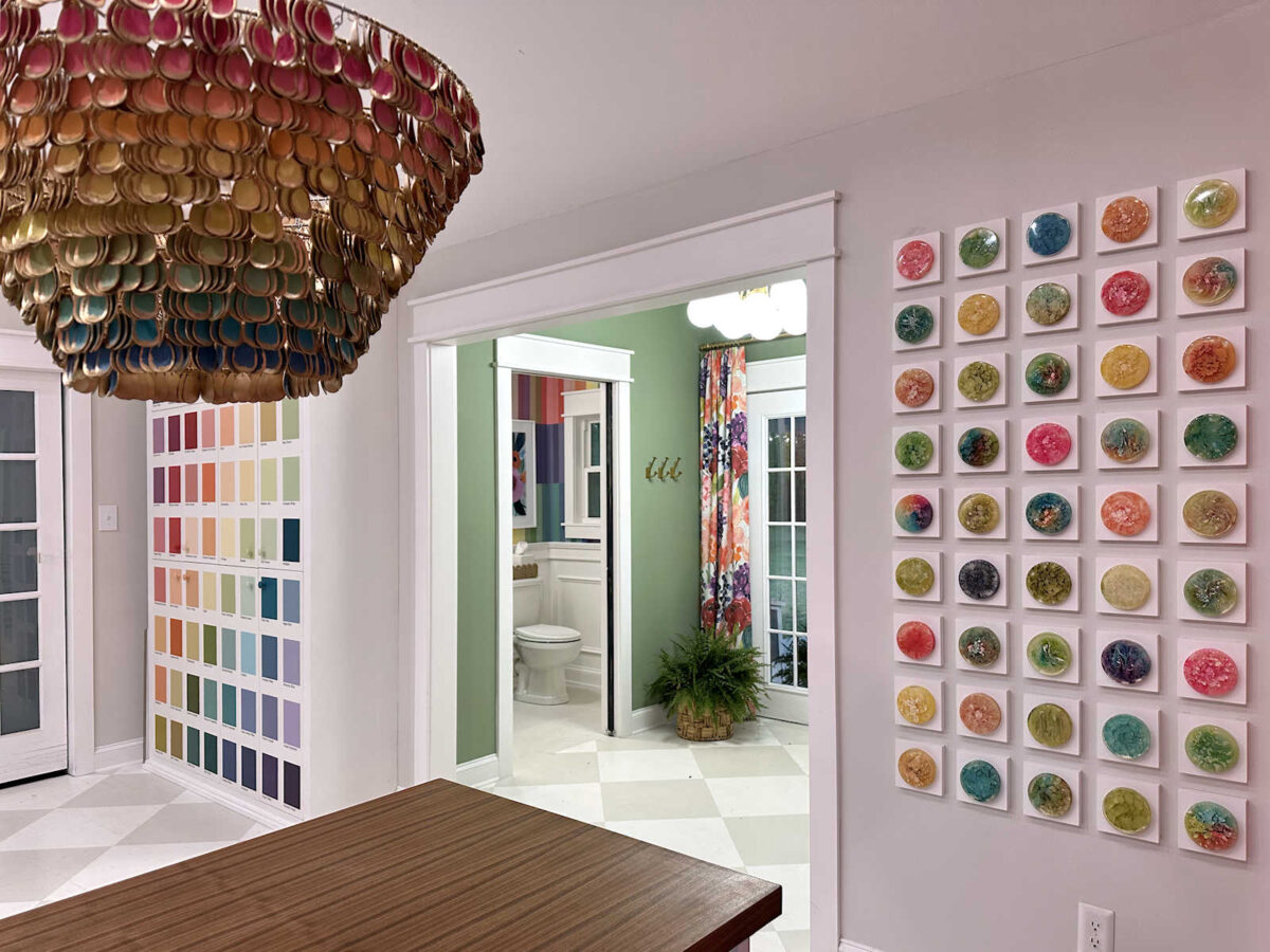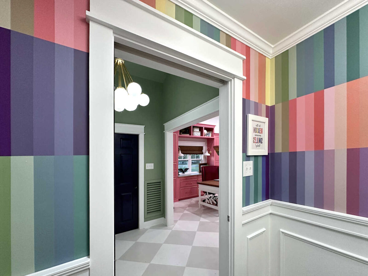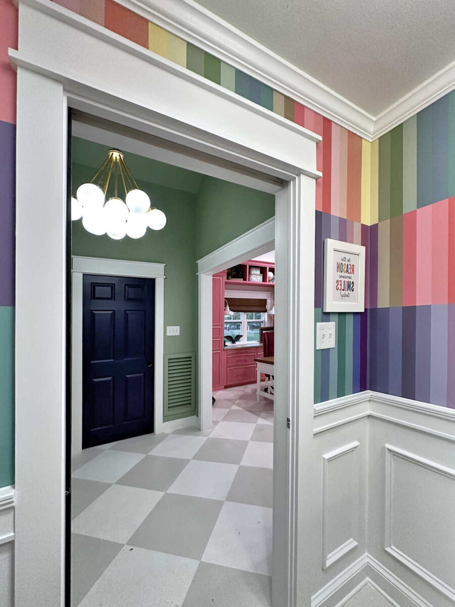 I don’t really have a lot of commentary to add to these photos except to say that I absolutely love sitting at my desk each morning and seeing the whole view of every color-filled wall of this room. Y’all know how much I love color, so starting my day being surrounded by this much color and pattern makes for the perfect start of each day for me. And now that the bathroom is finished, and I can see a glimpse into that room from my desk as well, it’s like another treat for my color-loving eyes when I sit at my desk and look around the room.