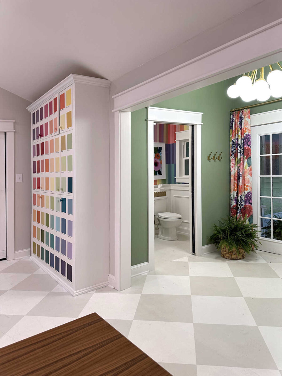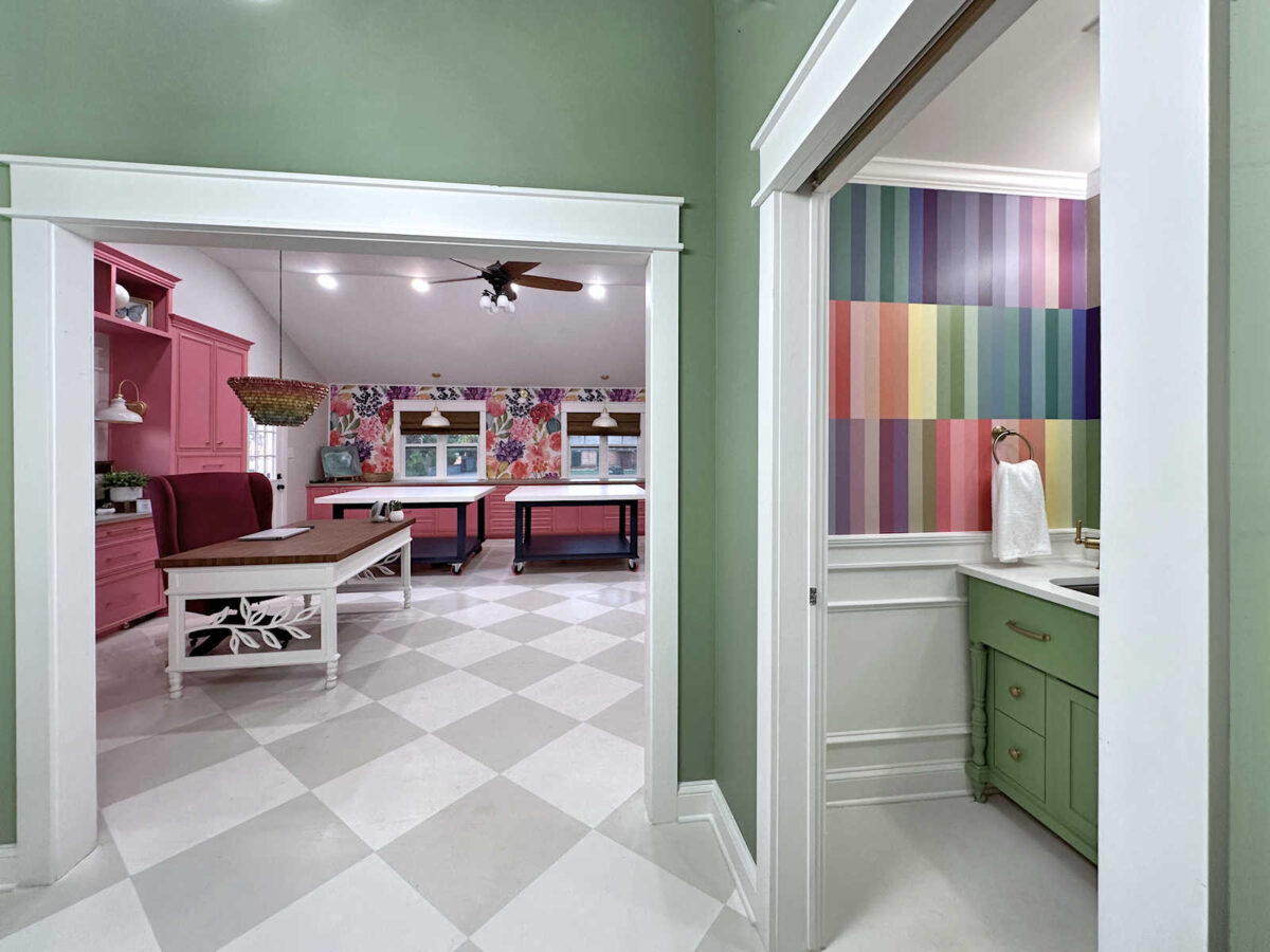 It feels amazing to finally have my whole studio finished and to have a usable bathroom again! Of all the rooms in our house, my studio (including the bathroom) is the most “me” of them all because I was able to do whatever I wanted to in this area without any concern for whether or not Matt would like it. So if you want to know what our whole house might look like if I were married to Matt, my studio is a pretty good indication. Perhaps it’s a good thing that I’m married to Matt so that I’m forced to moderate a bit in the rest of the house. 😀