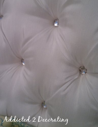 I absolutely love the headboard with the rhinestones. Just enough sparkle and so elegant.