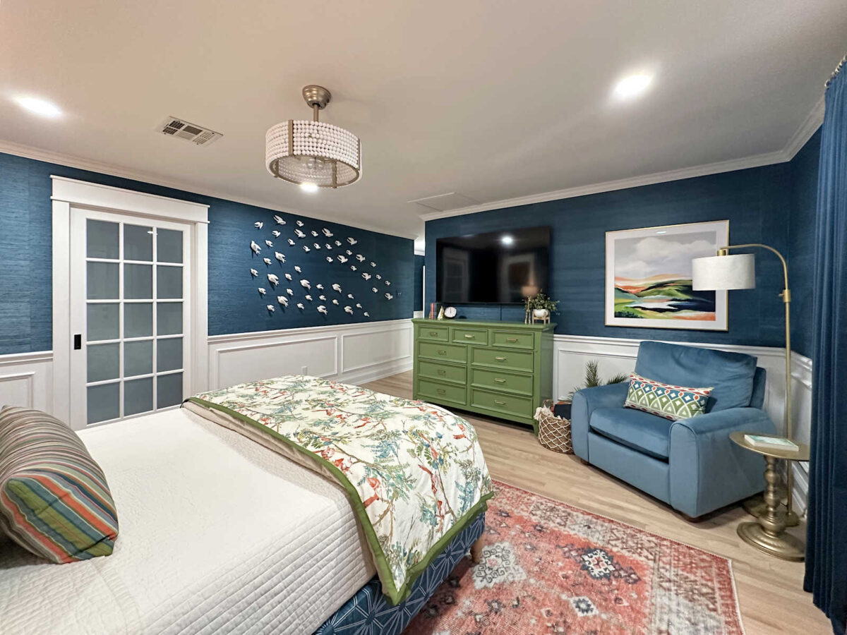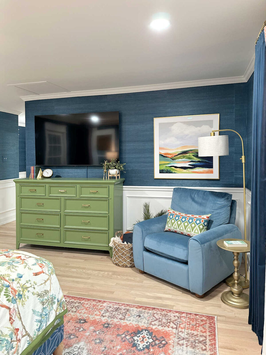 And now those walls that surrounded the closet area are completely gone, which left more room for a recliner and dresser. Removing that closet make the room feel so much bigger.