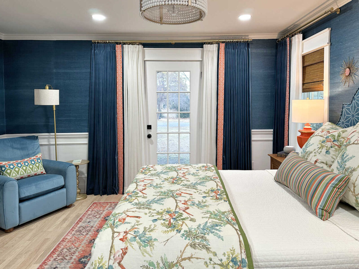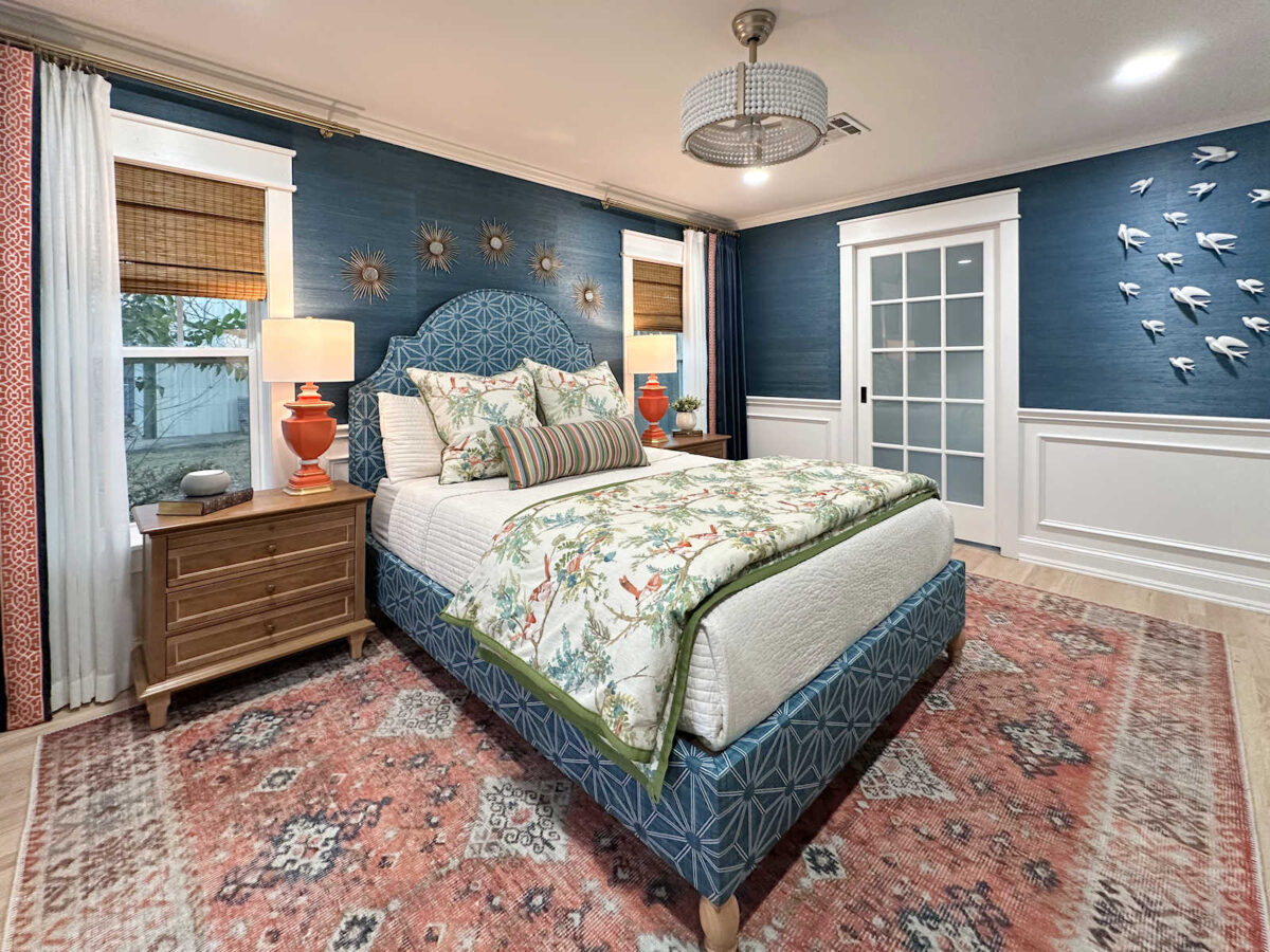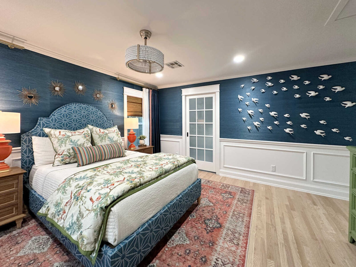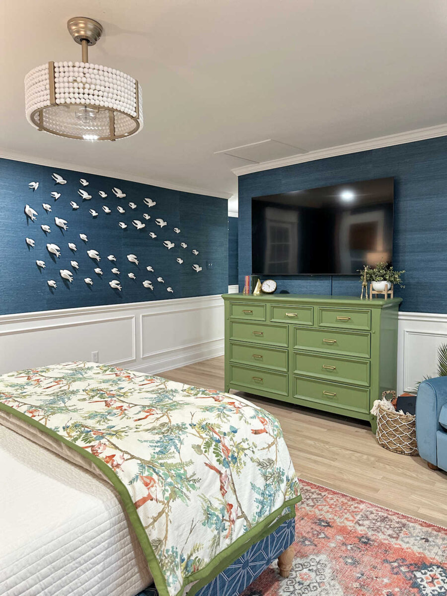 Stunning! Gorgeous! Beautiful! Amazing! ALL the words, Kristi!! I love it all, but I am particularly pleased with the addition of the bird fabric duvet. It really finished that bed. I hope you are as proud of yourself as we all are….Now go ENJOY!!