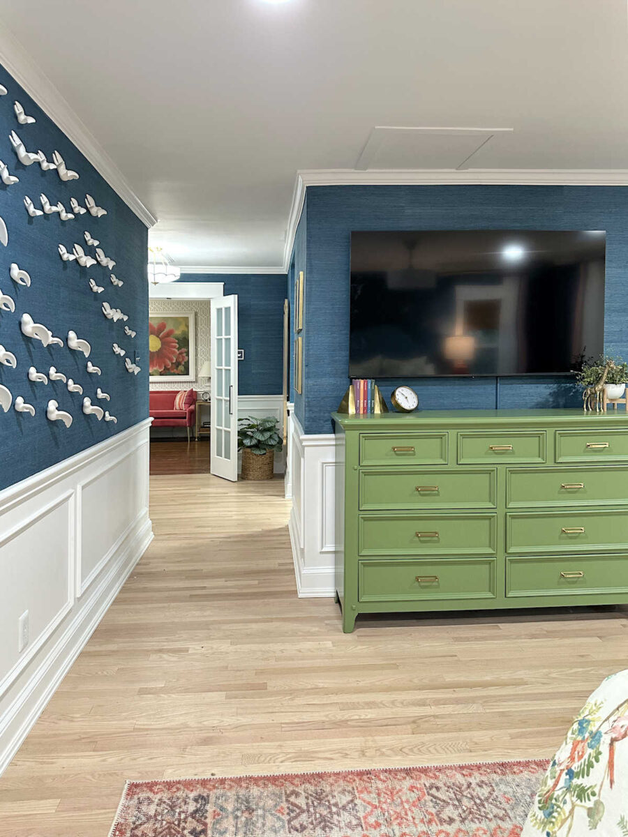 Those are all of the before and after picture I have for you, so now let’s get into the details. The wallpaper that I used isn’t available anymore, but it’s very similar to a grasscloth wallpaper by Thibault. So if you’re searching for teal grasscloth wallpaper, I suggest looking there first.