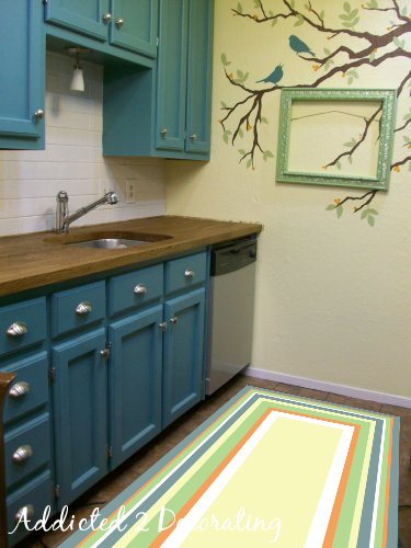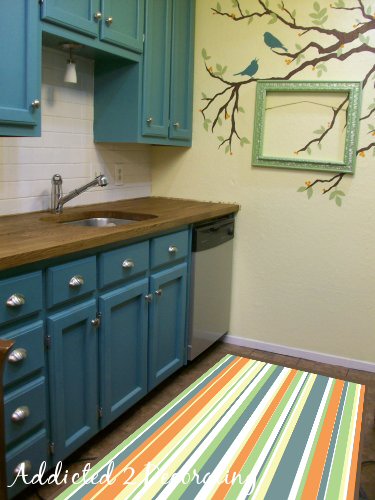 Oh I like the second, totally makes the kitchen look longer, but you didn't show us the chevron rug,,,, lol. Totally can't wait to see your tutorial on how you did this girl, I really need some fun vinyl rugs in my kitchen too.