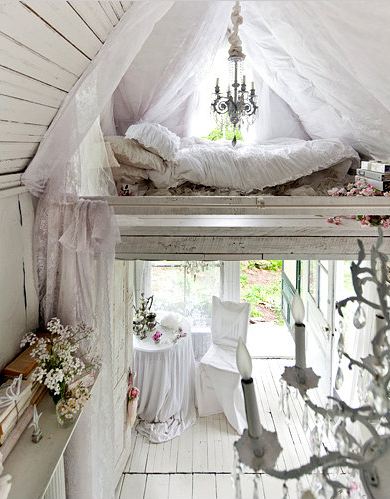 Wouldn’t you love to have a retreat like this?! I sure would! I’m not sure how I would decorate it, though. It wouldn’t be shabby chic, but I could definitely see me using pink (which I can’t use in my condo, per Matt’s request), and lots of feminine touches.