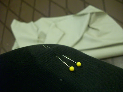 When you sew, always wear a padded bra! It makes a great pin cushion! No more searching for the pins underneath the mounds of fabric, or wearing one of those irritating wrist pin cushions. Nope, this is so much more convenient! They’re always there, and within arm’s reach (for most of us, at least). 😀