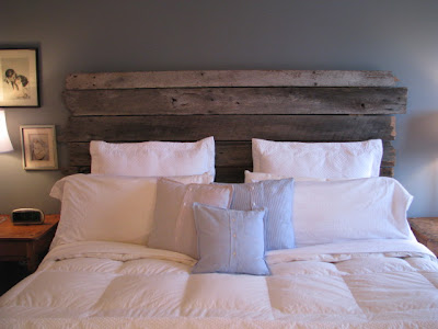 I seem to be on a rustic wood kick lately, and this barnwood headboard from Just Drink A Coke is simply perfect! Well, it’s actually not perfect at all. It’s far from perfect, which is part of its charm! I love it paired with the clean white bedding.