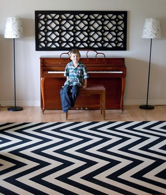 I’ve come across several hand-painted chevron rug designs lately. I love how such a simple, bold design can completely transform the look of a rug.