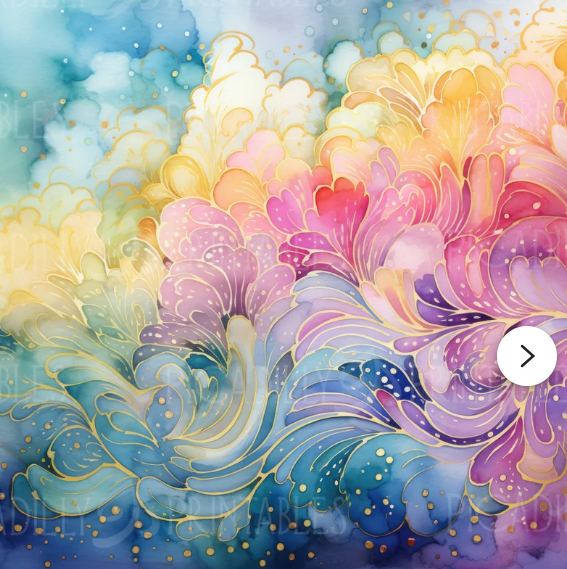 I found this series of colorful artwork with gold accents, and this particular print from that series really stood out to me. I like the juxtaposition of the swirly colors with the linear design of the wall.