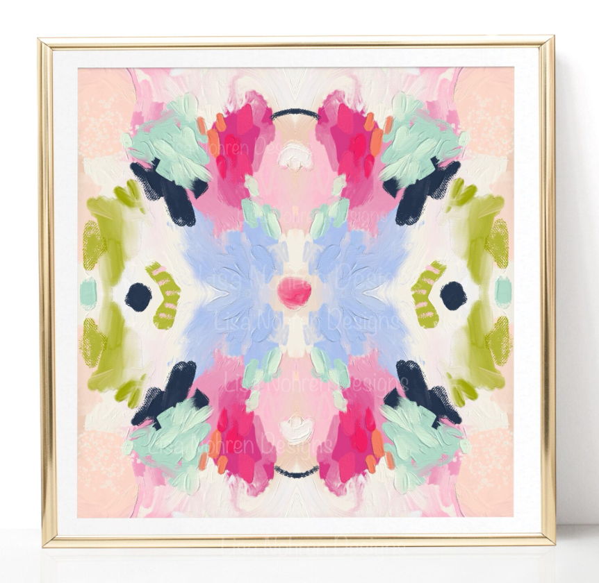 Having that pattern in those two areas is enough for me. Repeating it a third time would be overkill for me. So I headed to Etsy to see if I could find any downloadable printable artwork that might work. Obviously, I want something colorful, and I imagine putting the colorful artwork in a white frame with a thick white mat.