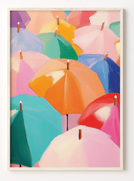 Then I came across this colorful umbrellas print. I do wish there was so green in it, though.