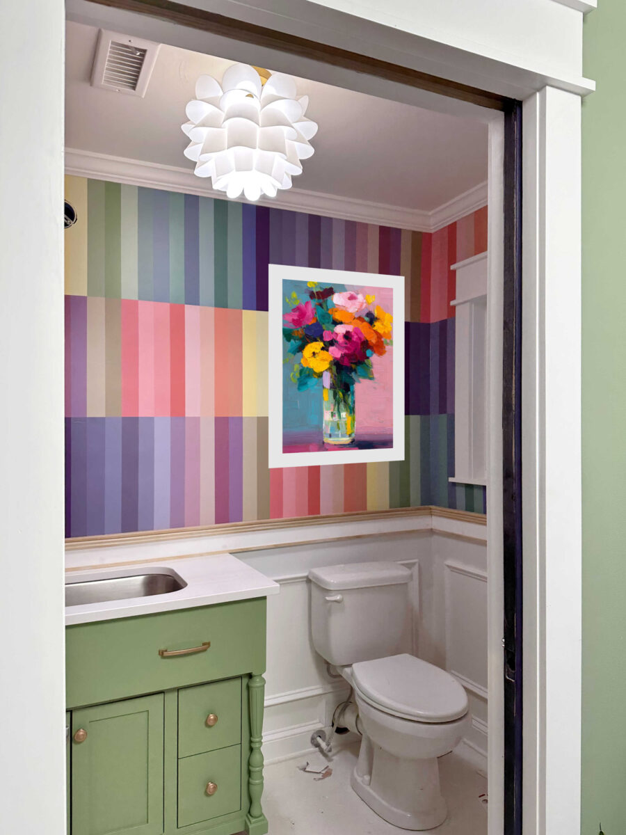 So I’m stepping out of my norm, out of my comfort zone, and I won’t be putting shelves back up in this bathroom. I think one of these prints will look great in this bathroom. I just haven’t quite decided which one I want to go with.