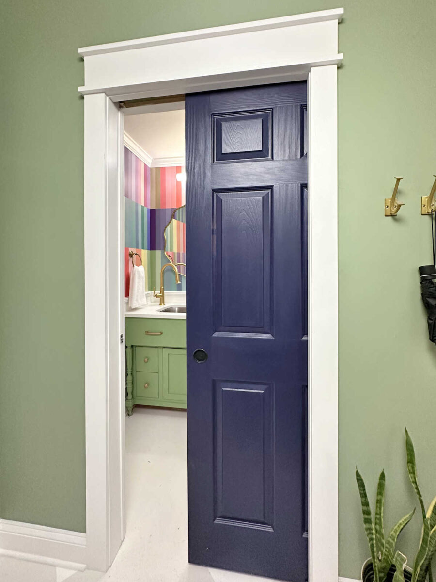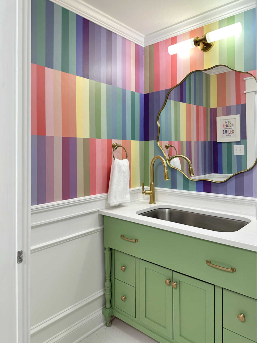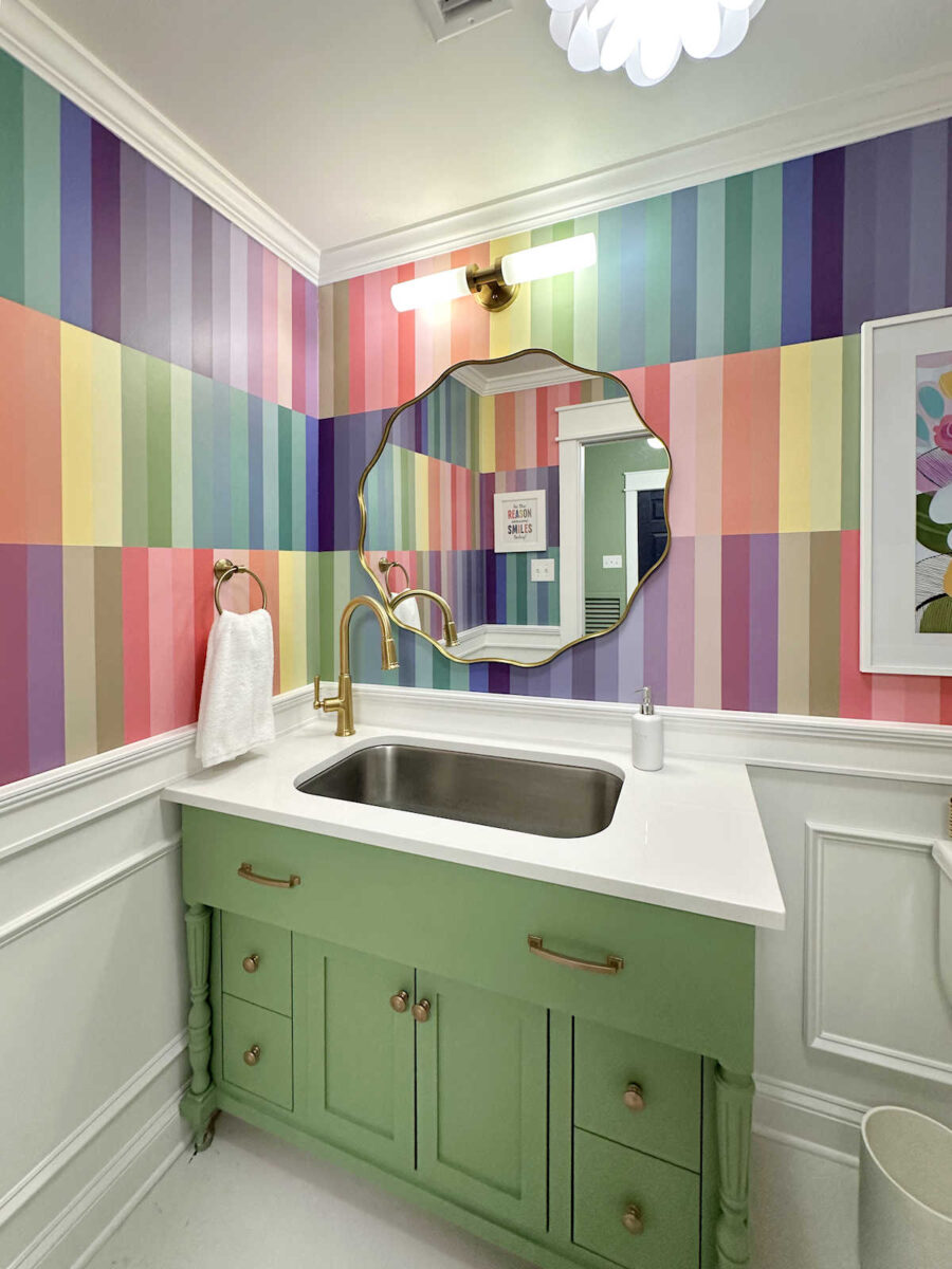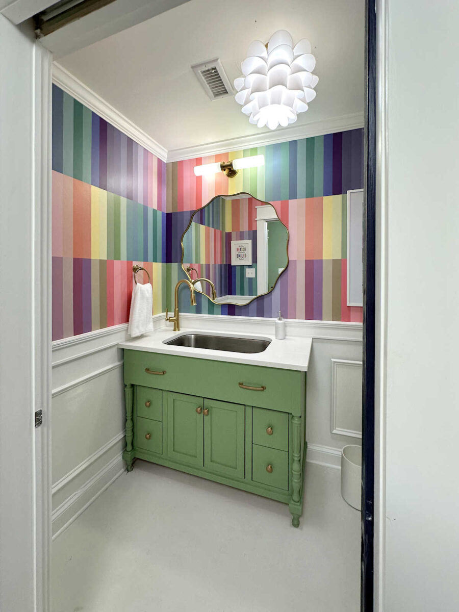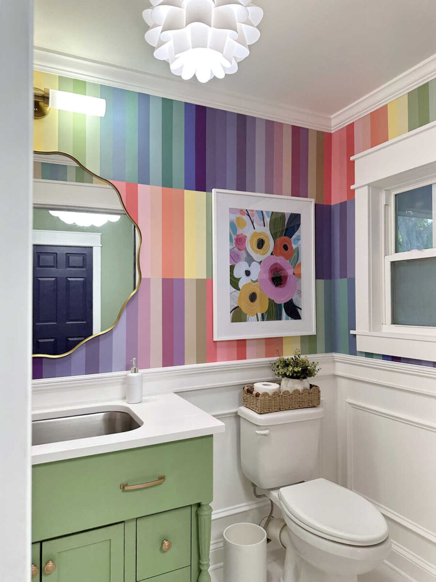 My studio half bathroom is finished! And I couldn’t be happier with how it turned out. This bathroom is basically what my whole house would look like if I weren’t married and didn’t have to consider the fact that I share this home with a person who doesn’t love color as much as I do. 😀 But since this is the bathroom in my studio, and Matt doesn’t get a say in how I decorate my studio, I was able to go a little wild with the color.