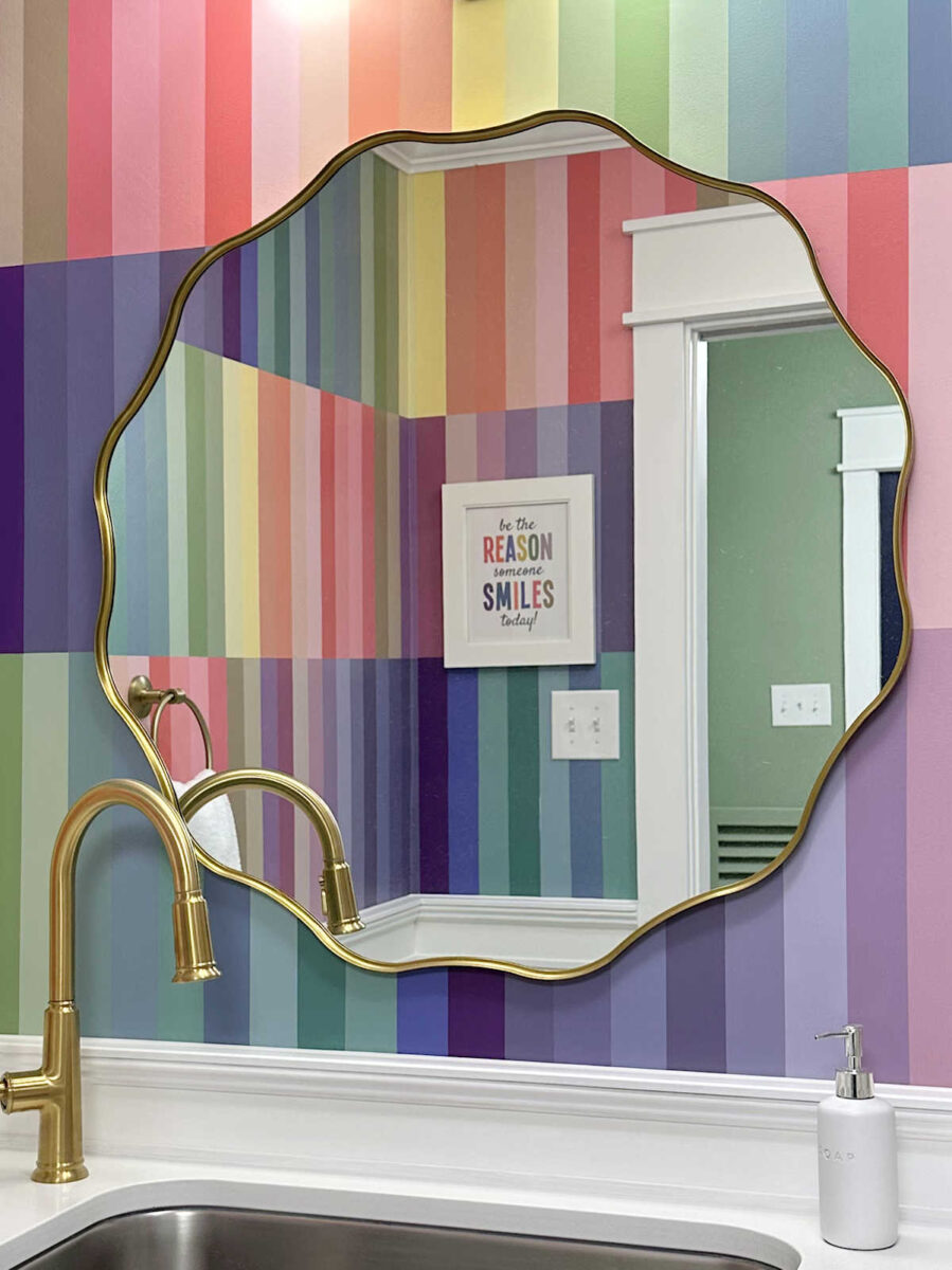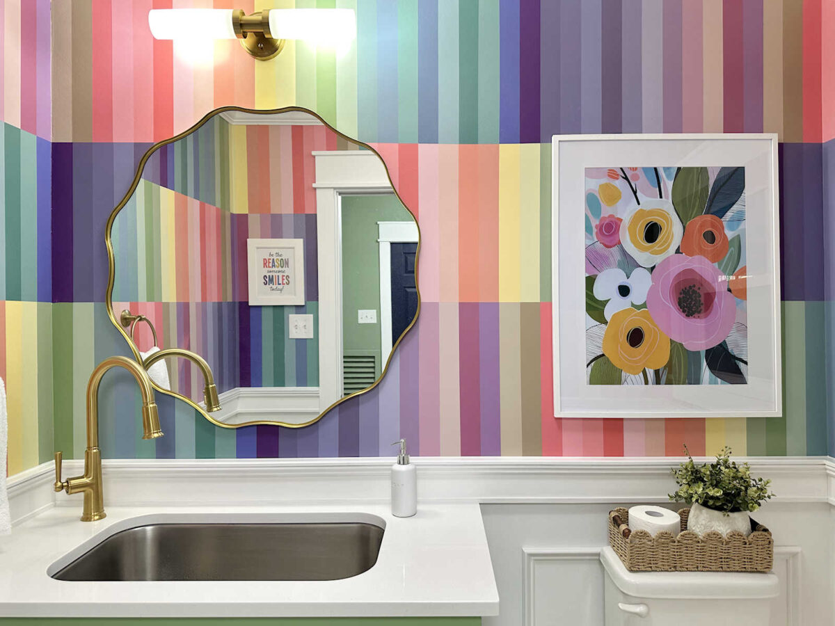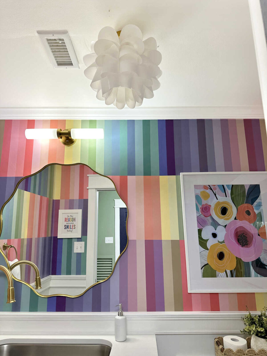 Kristi I’m not as brave as you are with color and if I tried this it would NOT turn out right at all…that said this is stunning!! The flower artwork is perfect, the mirror is perfect, the lighting, all of it. You have such a gift! I’ve also wanted a kitchen sink and faucet in our bathroom for awhile and doubted myself but inspired by you I’m doing it soon! Oh and the backwards artwork across from the mirror is so clever. Once again great job! Blessings from NC