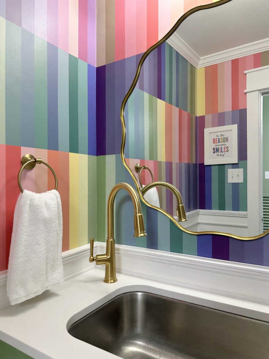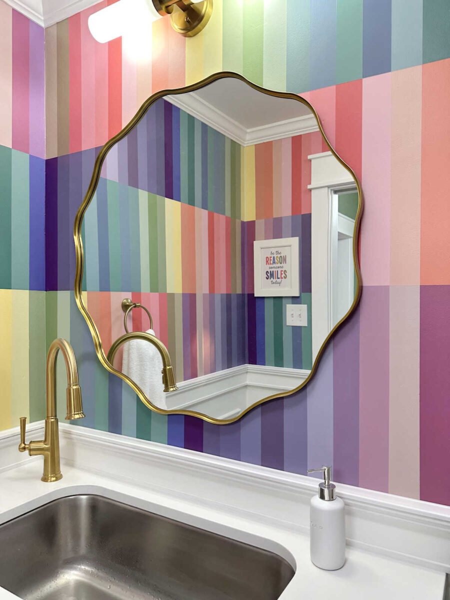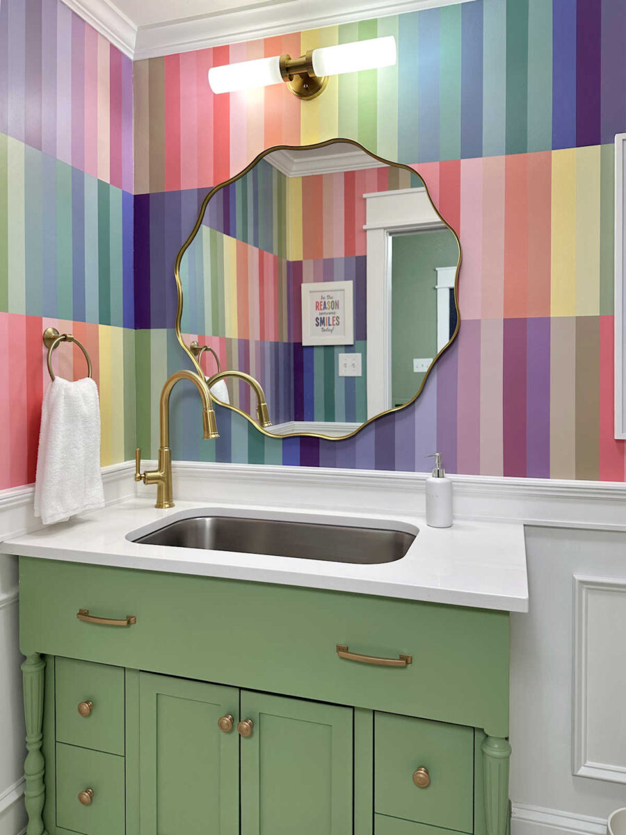 I really do think this is my favorite wall design I’ve ever done. In fact, I love it so much that I almost wish I had saved it for a much larger room or a more prominent area in our home. But then again, I know I love it a whole lot more than Matt does. 😀 So I guess it’s good that it’s tucked away in my studio bathroom.