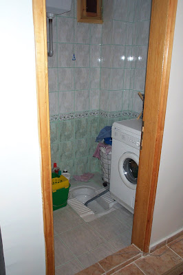 Oh dear. What is an American girl to do with a squatty potty when she has a perfectly good “western potty” just across the hall? Convert it into a utility room, of course! It makes a great drain for my washer/dryer combo (that takes 2 hours to do one load of laundry).