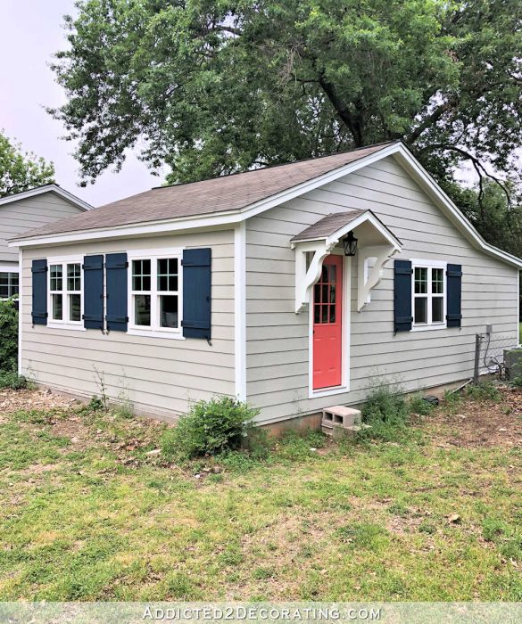 Side note: After I finish the studio bathroom, I think what I really want to do is spend a couple of weeks working on the front of our house. I STILL haven’t put that shutter back up. I have lights that needs to be repaired/replaced. The mailbox needs a good cleaning. The front porch needs some attention. I still haven’t finished the skirting on the front porch, and it’s been unfinished for a few years now. And our new bedroom door still hasn’t been painted.