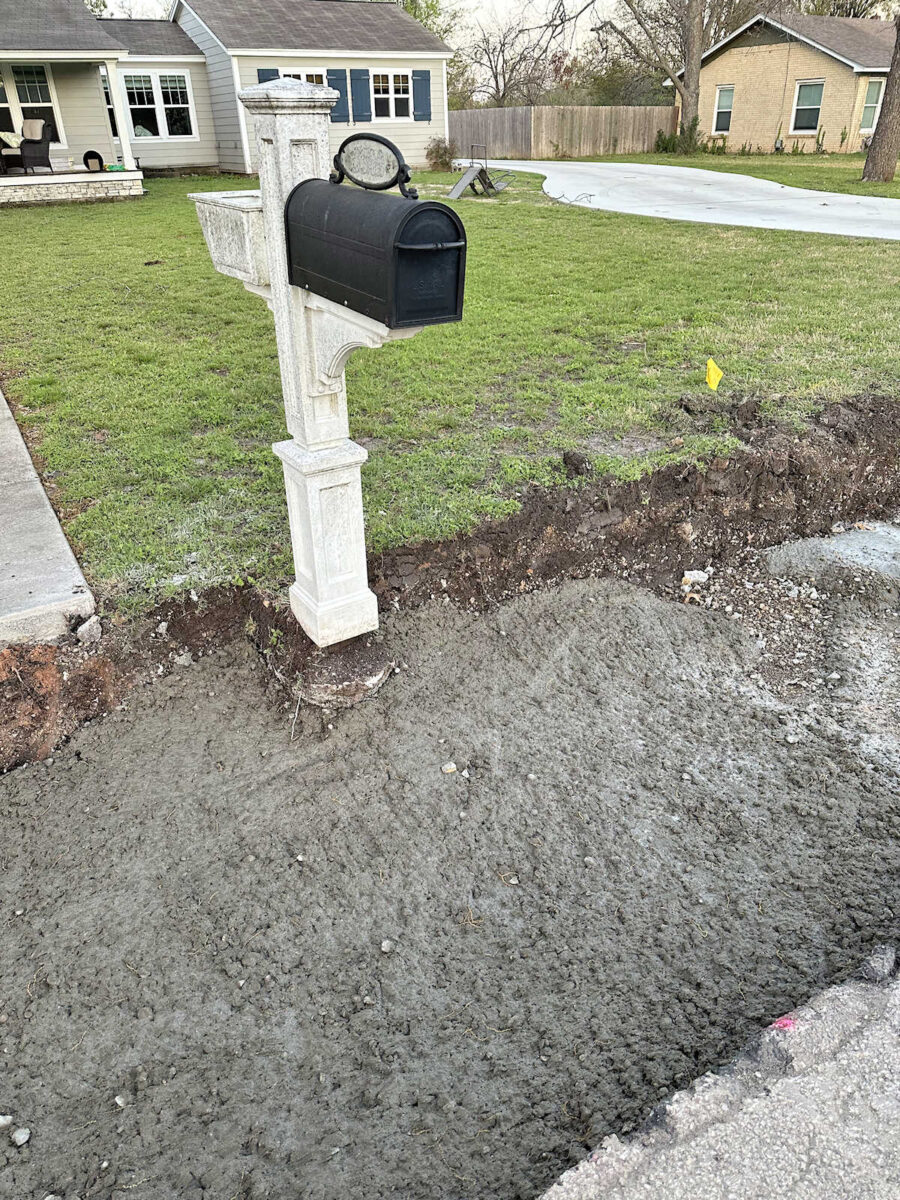 This is the best picture I could find to show the cracked, crumbly, dipped area in the curb in front of our house. This picture was taken years ago when we were having the new siding put on the house. But you can see both to the left and the right of the mailbox just how horrible the curbs looked. And it wasn’t just the curb. It was also the area in front of the curb that dipped down pretty significantly. So every time it rained, water, dirt, leaves, and other debris would get stuck there. So the curb wasn’t just an eyesore, it was a pain every time it rained.