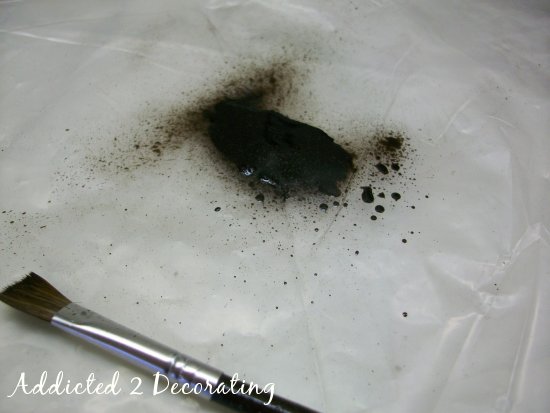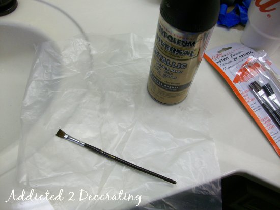 Then I got a small brush, a piece of plastic (cut from the drop cloths that I had used), and the spray paint.