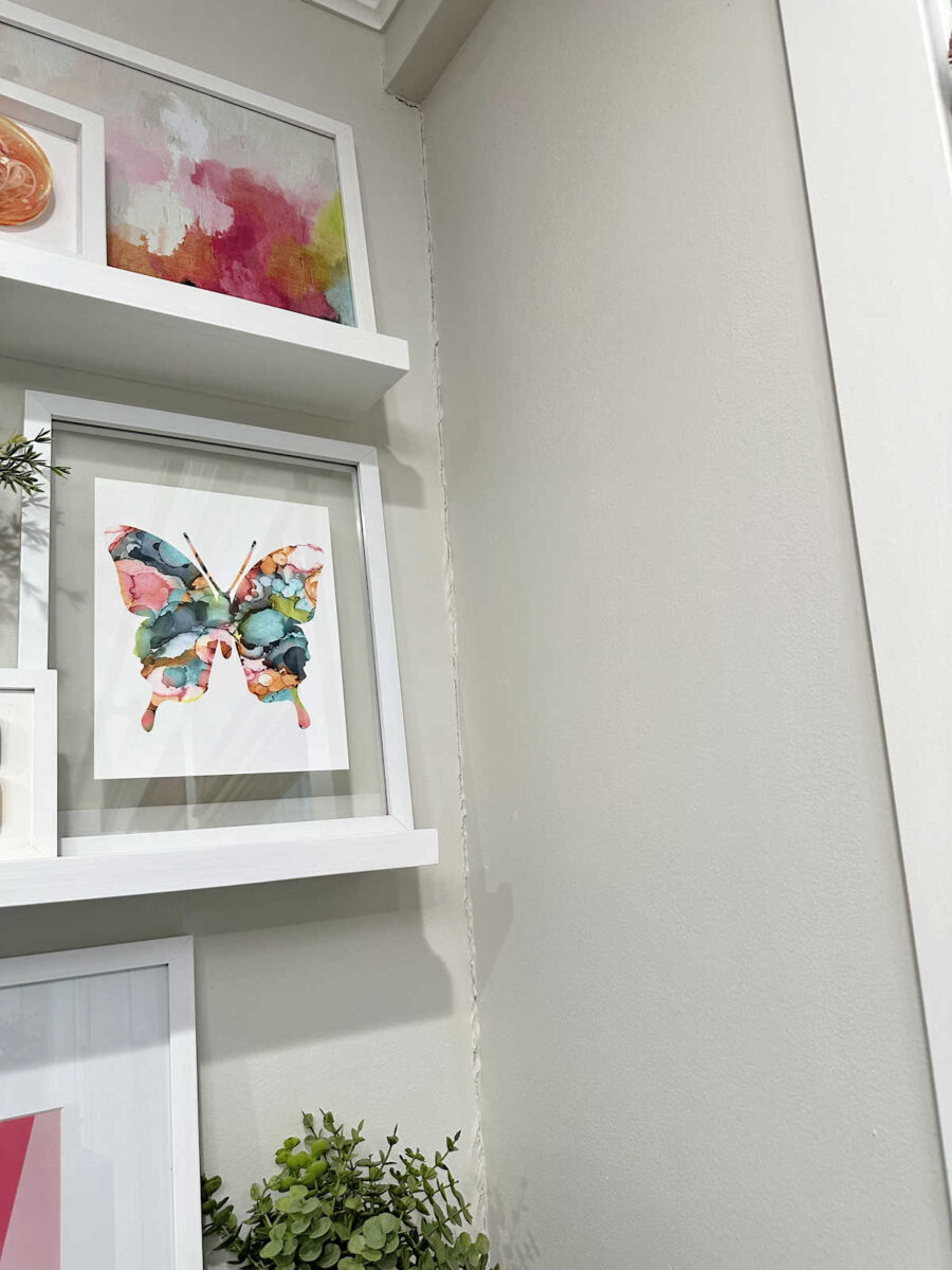 “I would never use a wallpaper in this room that wraps around the corners from one wall to the next because eventually, the wallpapered corners would look like that also.”