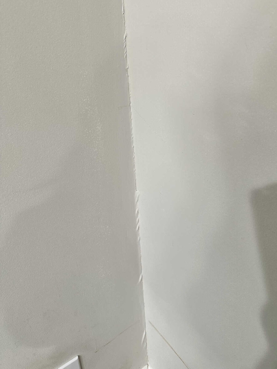 This is how it’s supposed to be applied. You don’t wrap the corners. You cut the corner and then apply a new piece on the second wall.