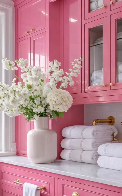 It was very interesting to take a tour through various rooms in your home throughout the redesigns. I like that you are not influenced by current color trends or what other people may think. I love the glossy pink cabinetry in the final photo! And that’s quite shocking for me as I have muted colors throughout my home.